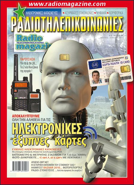 Το νέο τεύχος του περιοδικού Ραδιοτηλεπικοινωνίες κυκλοφορεί καλωσορίζοντας τη φετινή άνοιξη και κάνοντας μια προσπάθεια ενημέρωσης και... αφύπνισης των αναγνωστών, όχι μόνο όσον αφορά τα ραδιοερασιτεχνικά δρώμενα αλλά αυτή τη φορά, σχετικά με ένα φλέγον θέμα που αφορά κάθε πολίτη της ταλαιπωρημένης χώρας που λέγεται... Ελλάδα ! Το συγκεκριμένο άρθρο δεν αναφέρεται σε τίποτα περισσότερο από την ονομαζόμενη “Ραδιοσυχνική Αναγνώριση RFID” καθώς και τις “έξυπνες” κάρτες που σύμφωνα με το σχέδιο της κυβέρνησης, πρόκειται να εισβάλουν σταδιακά στην προσωπική μας ζωή και την καθημερινότητά μας... Σε συνδυασμό με την άθλια οικονομική κατάσταση των Ελλήνων, τα σκληρά φορολογικά μέτρα και την άσχημη ψυχολογία που επικρατεί... έρχεται να προστεθεί, τι; Η επιβολή μιας νέας, αναγκαίας κατά την κυβέρνηση, σύγχρονης ηλεκτρονικής κάρτας η οποία με την παραπλανητικά αθώα ονομασία “Κάρτα του Πολίτη”, θα καταγράφει όλα τα προσωπικά δεδομένα μέσω χρήσης ευρείας μορφής...